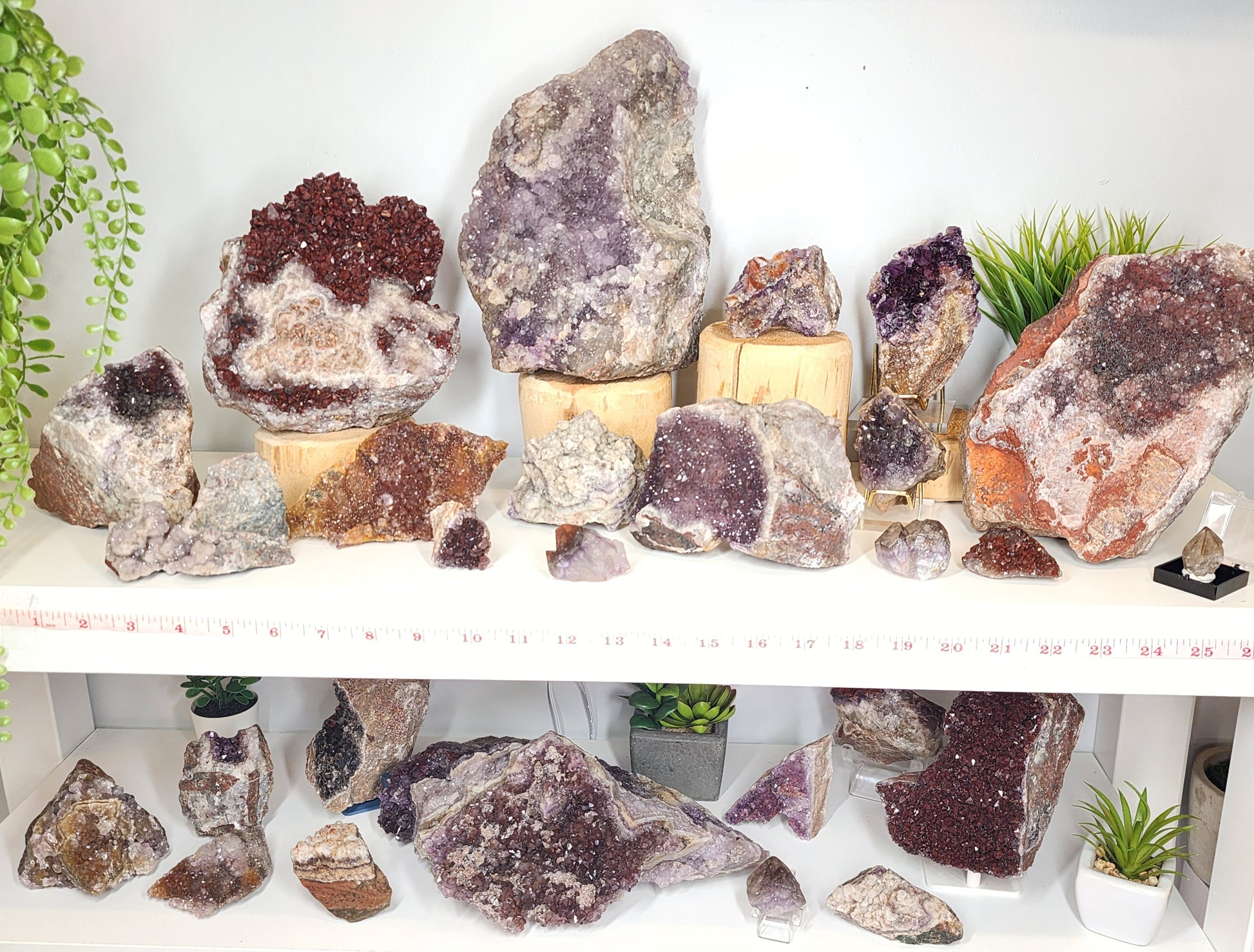 This wholesale collection of 27 specimens offers an extraordinary selection of premium Canadian amethyst variations sourced directly from our private mine in Thunder Bay, Ontario. Curated with care, this lot is perfect for retailers looking to showcase rare and vibrant specimens that highlight the geological diversity of amethyst formations. Also classified as Auralite 23 due to its complex mineral composition and energetic properties, these pieces offer immense visual and metaphysical appeal.