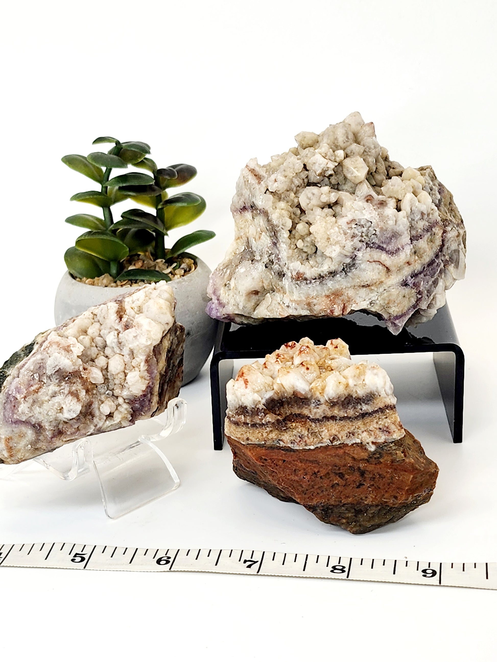 Red Amethyst with Galena Growth: A true standout – red amethyst with hematite matrix and galena crystals that create a glittering, eye-catching effect.